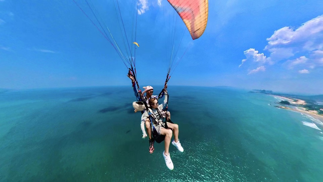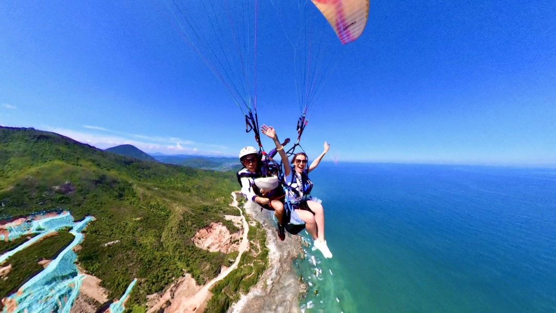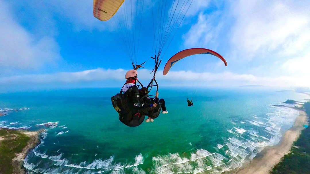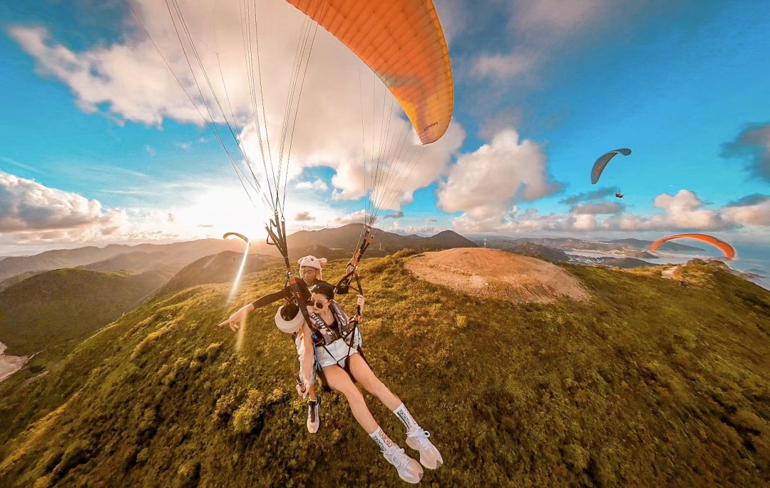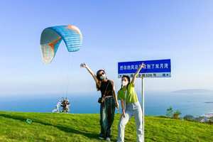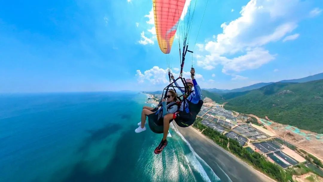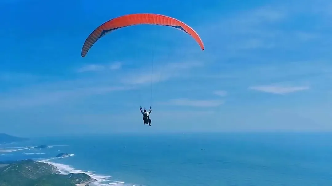 从360米高的山顶飞向大海,像雄鹰一样在天空自由翱翔,双月湾滑翔伞基地,好天气每天都营业!!