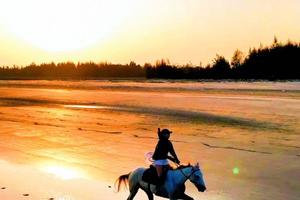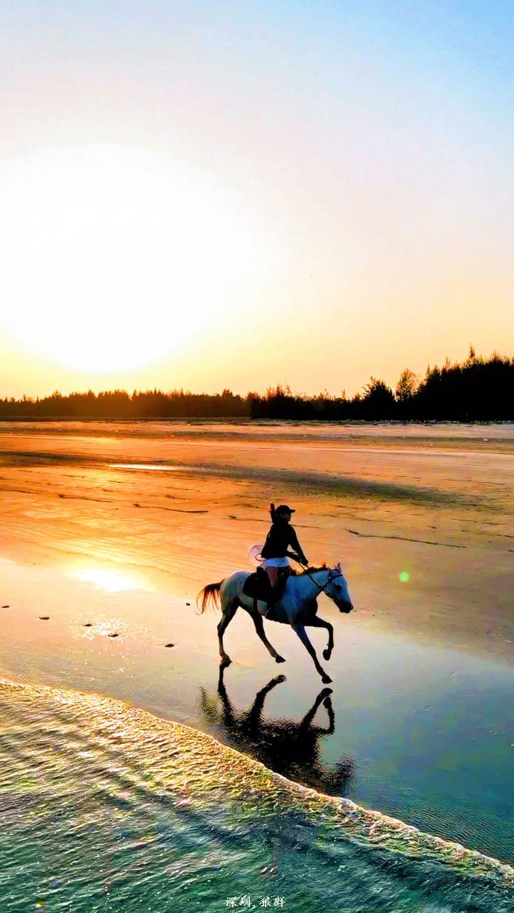 面朝大海,骑乘在海边的沙滩上,在海边的夕阳下做一回“英伦贵族”,骑马看夕阳,享受海滩的秘境